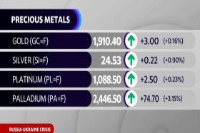 Gold and palladium prices both surged to seven-month highs, while palladium touched levels not seen in nearly 18 months as investors sought safe havens.